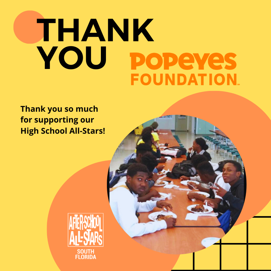 South Florida After-School All-Stars extends its sincere gratitude to the Popeyes Foundation for its commitment to supporting youth and strengthening communities. Partnerships like this ensure students are not only fed, but empowered to thrive.